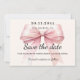 A modern and elegant Save the Date for a Quinceañera. A soft cream, beige colored background, decorated with a large pink bow. Personalize and add date, place, name and age.