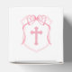 Pink Bow Crest Baptism Cube Favour Box