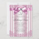 Pink Bow Cross First Communion Invitation