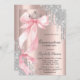 Elegant silver glitter drips, watercolor pink bow, and silver crown on a rose gold background. Personalize the text template with your event details. This invitation is available in both printed and instant download digital formats for your convenience.