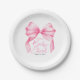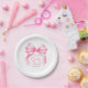 Add a cute touch to your baby shower celebration with this soft pink bow paper plates. Adorned with a delicate light pink ribbon design, these elegant plates blend sophistication with charm.