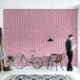 A charming and playful pattern featuring rows of simple, bold-lined pink bows against a soft pink background. The bows are evenly spaced and outlined in black, creating a playful and stylish look. This pattern has a sweet, feminine vibe, enhanced by the monochromatic pink palette and repetitive design.