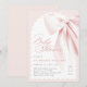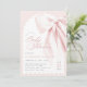 Pink Bow Elegant Baby Shower Invitation. This elegant invitation features a charming blush pink bow and romantic handwritten script, perfect for a whimsical baby girl shower. The chic ribbon and preppy design add a touch of sophistication, while the editable template allows for easy customisation. Create a beautiful and memorable invitation for your special event.