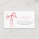 A stylish enclosure card that features a watercolor pink bow graphic in soft blush pink tones and a modern font. This pretty custom insert can easily be edited to suit your needs. The reverse side features a pink bow pattern and you can create the perfect invitation insert for a bow-themed baby shower, bridal shower, birthday or other special event. Pair with anything in the BLYTHE collection for a cohesive look.