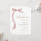 Celebrate your little sweetheart’s first birthday with this soft pink watercolor bow invitation. The elegant ribbon design and modern typography create a timeless, feminine look. Perfect for a classic baby girl party. Editable template.