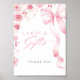 Features soft pink florals, a romantic bow, and a feminine script style.