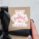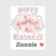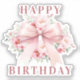 A pink bow over pink flowers, roses. Text: Happy Birthday