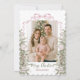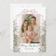 Share holiday joy with this elegant Merry Christmas photo card. Featuring for of your family photos framed by watercolor evergreens, ornaments, and a festive coquette pink bow, this design beautifully blends seasonal charm with a modern touch.