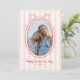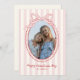 A sweet and charming Valentine’s Day photo card featuring blush pink stripes and an adorable scalloped frame topped with a hand-drawn bow. The oval photo window beautifully highlights your favorite picture, while the soft red script adds a warm, festive touch. Perfect for sharing love with family, friends, or classmates. Easy to personalize with your own photo and message.