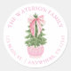 Pink Bow Ginger Jar Christmas Tree Address Classic Round Sticker