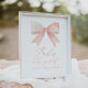 Invite friends and family to take a treat at you or a loved one's baby shower with this pink bow themed sign.