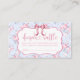 Pink Bow Girl Baby Shower Diaper Raffle Enclosure Card with sweet, feminine coquette pink ribbon and vintage rose toile background.