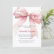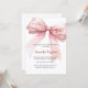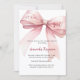 An elegant white background, decorated with a large pink bow. Personalise and add a name and party details.