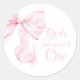 Pink Bow Girl First Birthday Classic Round Sticker