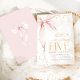 Pink bow girl's 5th birthday invitation. Modern feminine design in blush pink and gold. Features trendy watercolor coquette bow, calligraphy heart script font and modern typography FIVE. Perfect for an elegant style girl's fifth bday celebration. Personalize with your own details. Printed Zazzle invitations or instant download digital printable template.