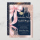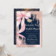 Pink Bow Glitter Grad Cap,Drips Navy Blue Invitation