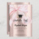 Black graduation cap, and pink bow on a rose gold background. Perfect for graduates who love a chic and stylish aesthetic, these invitations set the tone for an unforgettable event.