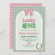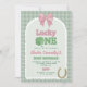 Pink Bow Horseshoe Clover Lucky One Birthday Invitation