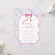 Shabby Chic Pink Bow It's A Girl Baby Shower Invitation. Beautiful elegant pink watercolor bow with dainty pretty roses on soft light blue background. Sweet as the mum to be. Heart accent scripted lettering.