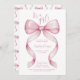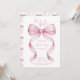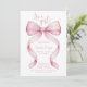 Coquette Pink Bow it's a Girl Baby Shower Invitation. Sweet girly charm beautiful watercolor painted pink bow with curled ribbon edges. Calligraphy script wording let's everyone know that she's having a girl. Invite friends and family to an enchanted girly coquette baby shower with bows galore! Pretty pink bow pattern on the back of the invitation. Templates are easy to edit with all the baby shower details.