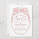 Pink Bow and Pearls Baby Shower Invitation, It's a Girl Pearl Baby Shower Invitation, Elegant Boho Pampas Coquette Baby Girl Invite
