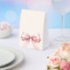 A versatile folded paper table tent with a beautiful illustrated bow. Comes blank so you can write your own text by hand — perfect for food labels, name cards, favor tables, candy buffets, reserved signs and more. A budget-friendly option for First Communion, Confirmation, Sweet 16, Quinceañera, baby showers and birthday parties.