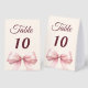 A soft ivory colored background, decorated with a large pink bow. Add your table numbers one by one.