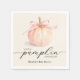 A cute little pumpkin, tied with an elegant pink ribbon, highlights these girl baby shower napkins, featuring "A little pumpkin is on her way" and the mum's name. (Available in blue and ivory, too.) MATCHING items in our collection.