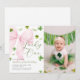 Pink Bow Lucky One Shamrock Clover 1st Birthday Invitation