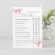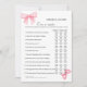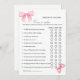 Pink Bow Over or under bridal shower game Card
