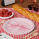 Pink Bow Paper Plate With Plain Pink Backround