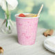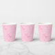 Cute bow theme baby shower or birthday party paper cup featuring illustration of pink ribbons and hearts.