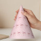 Soft pink party hats featuring an elegant repeating bow pattern with a delicate watercolor look. Perfect for girls’ birthday parties, pastel celebrations, princess themes, chic kids events, and stylish party table décor. A timeless and customizable design ideal for modern birthday celebrations.