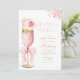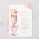This stunning invitation features a golden and pink prosecco glass adorned with delicate pink florals and a pink bow. The design is perfect for a chic Petals and Prosecco themed brunch and bubbly celebration. Featuring graceful script calligraphy and elegant pink floral details, this invitation blends modern sophistication with timeless charm. Customise it with your event details to create a captivating and memorable announcement.