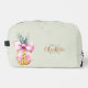 A trendy sage green background decorated with a pink bow and a pineapple. Personalise and add a name and your monogram initials.