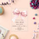 A clear, transparent background, decorated with a pink large bow. Personalise and add a name and party details.