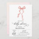 Pink Bow Ribbon Dots Baby Shower Invitation
