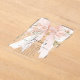 Blush pink watercolor coquette bow is decorated with roses and sage green greenery. A gold cross is placed above the text. The back is a chic pink and white stripe pattern. Your daughter's name is written in a beautiful calligraphy script. All text is editable.