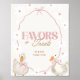 A little silly goose is celebrating their birthday! This favours and treats sign design features a pink cottage-core design with pink bows, daisies and coquette-styled little geese.