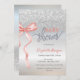 Pink Bow Silver Glitter Bokeh Baby Shower Invitation