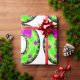 Pink Bow Stars and Green Christmas Holiday Wreath Wrapping Paper