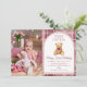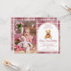 Pink Bow Teddy Bear Tartan Photo Birthday Invitation