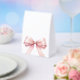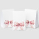 A versatile folded paper table tent with a beautiful illustrated bow. Comes blank so you can write your own text by hand — perfect for food labels, name cards, favor tables, candy buffets, reserved signs and more. A budget-friendly option for First Communion, Confirmation, Sweet 16, Quinceañera, baby showers and birthday parties.