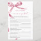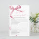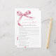 Pink Bow "Who Knows Mummy Best" Game – Add some fun to your baby shower with this charming game card featuring a delicate blush pink bow design. This "Who Knows Mummy Best" game is perfect for engaging guests and celebrating the mummy-to-be in style. With elegant script and feminine accents, this game card is a beautiful addition to any baby shower theme, making it a memorable keepsake for the mum and her loved ones.