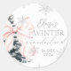 Pink Bow Winter Onederland 1st Birthday Classic Round Sticker