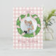 Share your holiday cheer with this charming Pink Bow Wreath Photo Christmas Card, featuring a classic gingham background and a beautifully illustrated wreath tied with a soft Pink ribbon. Designed to showcase your family photo, this preppy and grandmillennial-inspired style brings a timeless, elegant touch to your festive greetings.