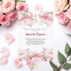 An elegant white background, decorated with a 3 pink bows, pink flowers and a baby bottle. Personalise and add a name and party details.