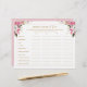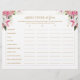 Romantic pink and white painted florals bridal shower game with gold text.