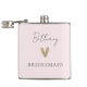 Pink Bridesmaid Heart Modern Script Hip Flask