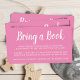 Pink Typography Bring a Book instead of card baby Shower Enclosure Card. This pink and white typography bring a book invitation insert is perfect for a modern baby shower. Send these enclosure cards out with your baby shower invitations and ask your guests to bring a book for the baby instead of a card. The minimalist and simple design for a baby girl.